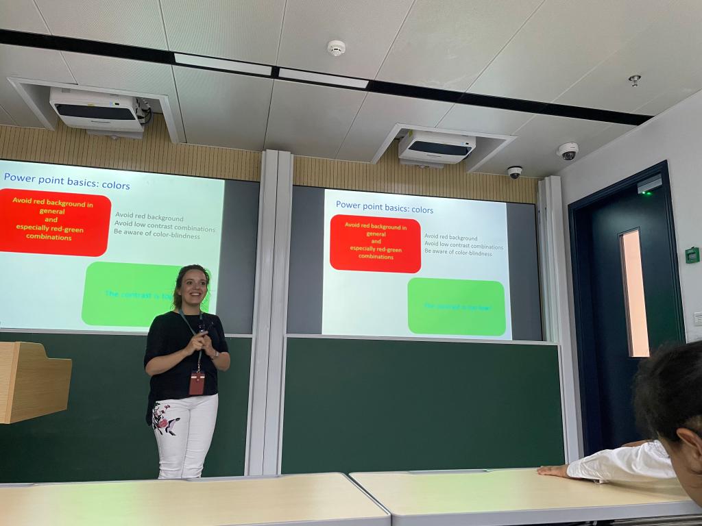This event specially invited Dr. Elena Goi from Italy shares how to make a good presentation in English. At the same time, 7 international students from different countries were invited to join the discussion. At the beginning of the activity, Dr. Elena Goi first shared with us the skills of preparing PPT and then shared how to tell a story logically with vivid examples, and then international students and students from SMC joined to share their presenting experience and discuss how to make an attractive report.