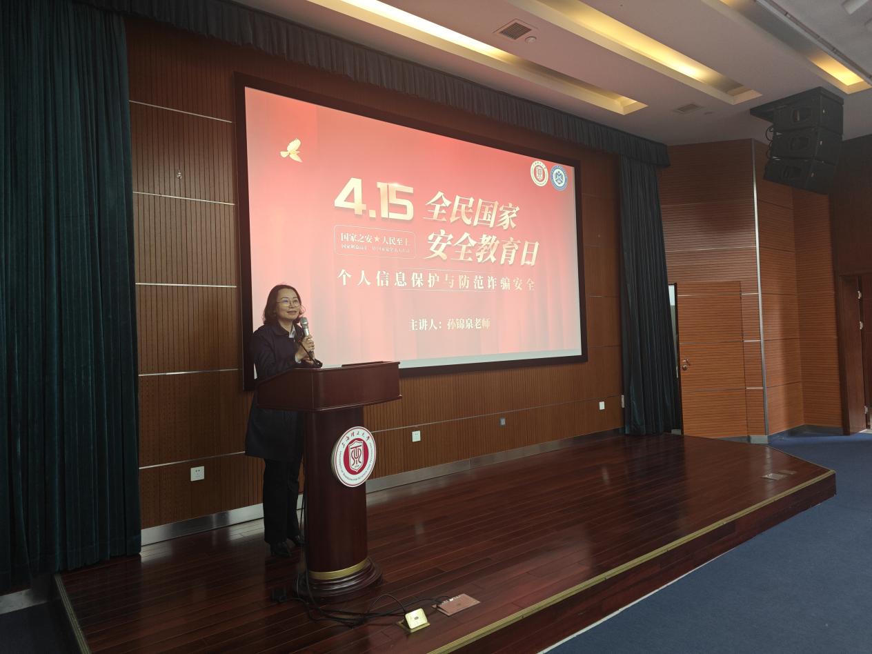 Marking the 10th anniversary of National Security Education Day, the School of Materials and Chemistry invited Sun Jinquan, Deputy General Manager of the Network Information Security Department of a local telecommunications operator, to deliver a lecture titled "Personal Information Protection and Fraud Prevention" on the afternoon of April 15. The event aimed to enhance students' security awareness and strengthen the "firewall" of cybersecurity.Attendees included Xie Xihao, Director of the University Security Office; Cao Ying, Party Secretary of the School of Materials and Chemistry; Wang Yan, Deputy Director of the Security Office; Dong Xiaoliang, Deputy Party Secretary of the School; Zhang Chenqing, officer from the Political Security Section of the Security Office; as well as faculty and students from the School.