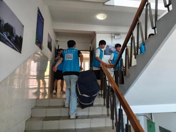 To ensure the orderly progress of the dormitory relocation for the 2024 undergraduate cohort of our school and inherit the volunteer service spirit of "Dedication, Fraternity, Mutual Assistance, and Progress", the School of Materials and Chemistry launched a volunteer service activity for new students' dormitory relocation on July 5, 2025. The school's volunteers worked together in perfect coordination and took active actions in the intense heat, successfully completing this volunteer service activity. During the preparation stage of the activity, the volunteer team learned about the new students' information in advance, formulated a phased work plan based on the departure schedule, and clarified the division of tasks such as luggage handling and route guidance. These measures ensured the reasonable arrangement of personnel and efficient implementation of work, laying a solid foundation for the 2024 undergraduates to smoothly arrive at their new dormitories and complete the check-in process. At 6 a.m. on July 5, the first batch of volunteers had already waited at the entrance of the dormitory building early, greeting the 2024 juniors and juniors with full enthusiasm. As the vehicles arrived at the 580 Campus, the volunteers acted quickly: they took the initiative to help unload and carry luggage from the vehicles, assisted with registration procedures, and accompanied the juniors and juniors to their new dormitories, providing "one-stop" services throughout the process. Despite the high temperature on that day, everyone still devoted themselves to the work with high spirits. Although sweat soaked their clothes, the volunteers' warm smiles and busy figures became the most touching scene on campus in the sweltering summer. At 12 noon, when it was confirmed that the centralized relocation of the dormitory buildings for the 2024 undergraduates of the school had been successfully completed, this campus relocation volunteer service activity officially came to an end. This relocation volunteer service activity not only demonstrated the sense of responsibility of the students of the School of Materials and Chemistry, but also made the 2024 undergraduates who moved into the main campus for the first time feel the warmth of the school's big family. In the future, the school will continue to deepen the construction of the volunteer service brand, and looks forward to more students joining the volunteer team to inherit and carry forward the fine tradition of volunteer service of our school, and integrate the spirit of dedication into every corner of campus life.