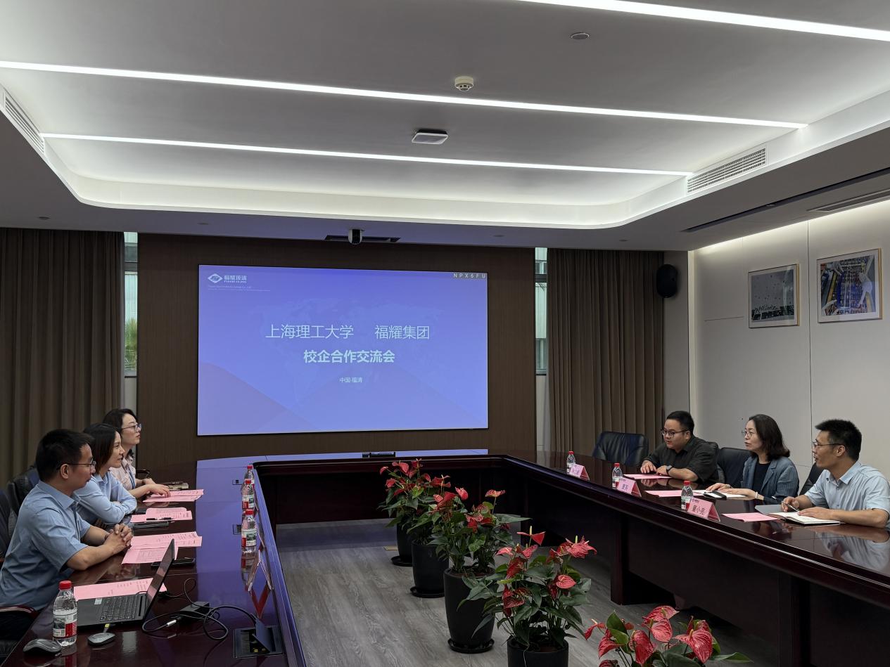 To thoroughly implement General Secretary Xi Jinping's important expositions on education, science and technology, and talent work, and further deepen the integration of industry and education as well as university-enterprise cooperation, from July 21 to 22, a delegation from the School of Materials and Chemistry of University of Shanghai for Science and Technology (USST) went to the headquarters of Fuyao Group and the School of New Materials and New Energy of Fuyao University of Science and Technology for research and exchange. Zhang Haiyan, Director of the Human Resources Management Center of Fuyao Group, Zheng Yongjian, Deputy Director, Lin Meifen, Campus Recruitment Manager, Wu Mingrong, Campus Recruitment Operations Specialist, Jiang Jianzhong, Dean of the School of New Materials and New Energy of Fuyao University of Science and Technology, and Zhong Cenchen, Administrative Assistant, received the delegation. Cao Ying, Secretary of the Party Committee of the School of Materials and Chemistry, Dong Xiaoliang, Deputy Secretary of the Party Committee, and Lin Zhiwei, Counselor, participated in the research. On the afternoon of July 21, accompanied by Director Zhang Haiyan, the delegation visited the exhibition hall of Fuyao Group, and gained an in-depth understanding of the enterprise's development history, core products, intelligent manufacturing, and global layout. In the Party-Mass Activity Room, the two sides conducted in-depth exchanges on the characteristics of the Group's Party building, talent cultivation, and the integration path of Party building. Director Zhang Haiyan extended a warm welcome to Secretary Cao Ying and her delegation, and introduced Fuyao Group's talent echelon construction, university-enterprise cooperation model, and employees' career development. Deputy Director Zheng Yongjian focused on introducing the "Yao Xinxing" (Shining New Stars) campus recruitment and talent training program. Secretary Cao Ying expressed gratitude to Fuyao Group for its long-term support for the school's talent cultivation and employment work, and introduced the school's discipline construction, scientific research innovation, and talent cultivation. The two sides reached a preliminary consensus on expanding students' internship and employment opportunities, constructing internship and practice bases, and jointly building Party organizations.
