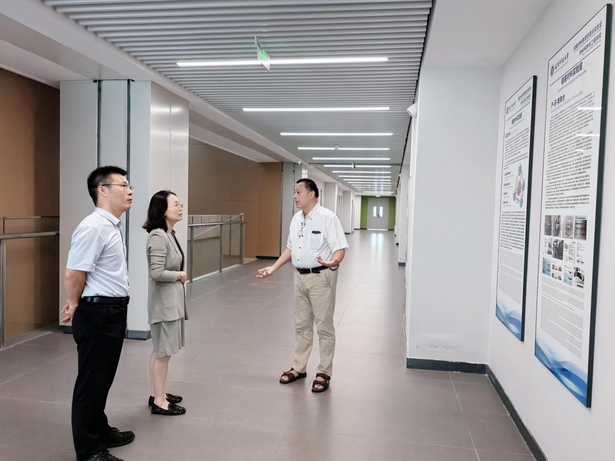 On the morning of July 22, the delegation went to the School of New Materials and New Energy of Fuyao University of Science and Technology. Accompanied by Dean Jiang Jianzhong, they visited the school building, new energy materials laboratory, electron microscope center, and teaching and research platforms, and gained a detailed understanding of the school's construction progress, research directions, and experimental teaching conditions. At the symposium, Dean Jiang Jianzhong introduced the school's orientation, construction overview, and other aspects. The two sides conducted in-depth communication on discipline layout, enrollment work, and talent cultivation. Secretary Cao Ying stated that Fuyao University of Science and Technology has made systematic planning and achieved high-start construction, high-quality enrollment, and high-level governance. She hoped that the two sides would strengthen exchanges and cooperation in the future to jointly contribute to the cultivation of high-level talents in the national new materials field. This research and exchange activity is an important measure for the school to implement the special action of "visiting enterprises to expand posts and promote employment", and has laid a solid foundation for in-depth university-enterprise and university-university cooperation in the future. In the next step, the school will continue to promote the construction of a collaborative education mechanism with industry associations, key enterprises, and brother institutions, continuously improve the quality of talent cultivation, and serve the national new materials development strategy and the development of Shanghai's materials, chemical, and chemical engineering industries.
