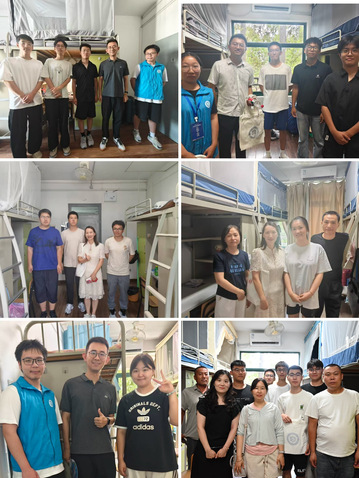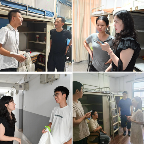 Settle into the "Home" with Peace of Mind, Meticulous Care To help freshmen integrate into college life faster and feel the warmth of the school, on the afternoon of the registration day, the homeroom teachers of the school, leading a team of volunteers, visited the 2025 undergraduate freshmen in their dormitories. The teachers sat down and talked with the freshmen and their parents, carefully understanding how the freshmen were adapting to campus life, and had in-depth communication about the upcoming campus life and academic planning. In the face of questions raised by everyone regarding dormitory life and course arrangements, the teachers gave patient and detailed answers, effectively alleviating the concerns of parents and freshmen and conveying the warm care from the school.