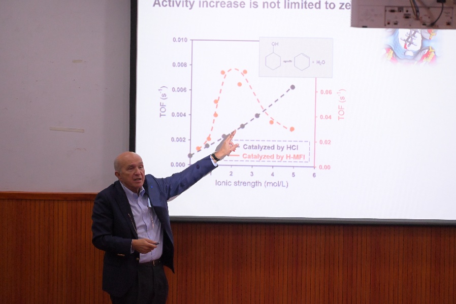 The report focused on cutting-edge topics in the field of energy catalysis. Academician Lercher began by systematically outlining the current state of global energy consumption and the distribution patterns of carbon emissions, providing an in-depth explanation of the urgency and scientific pathways for promoting carbon reduction and renewable energy development. Addressing the efficient catalytic conversion of energy molecules, he analyzed the mechanisms of catalytic reactions from the perspective of physical chemistry, proposed targeted catalyst design strategies and pathways to enhance reaction efficiency, offered innovative insights into the cyclic conversion of carbon resources such as waste plastics, and highlighted the significant implications for building a sustainable energy system.