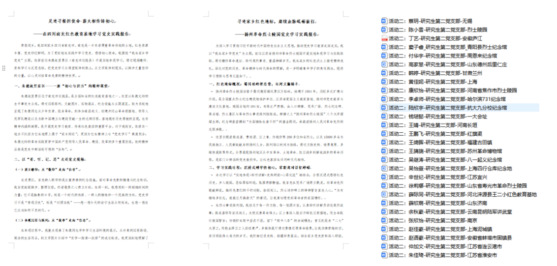 In the Tracing Roots, Passing on the Torch practical study at revolutionary education bases, faculty, student Party members and activists for Party membership responded actively. They conducted on-site studies at revolutionary sites, memorial halls, martyrs' cemeteries and other red venues in and around their hometowns. From the Site of the First National Congress of the CPC and the Sihang Warehouse Battle Memorial in Shanghai, to the Zhou Enlai Memorial Hall and the Kangri Mountain Martyrs' Cemetery in Jiangsu, from Nanhu Lake in Jiaxing, Zhejiang to the February 7th Memorial Hall in Zhengzhou, Henan, from the Shouguang Martyrs' Cemetery in Shandong to the Yunnan Military Academy, Party members comprehended the original aspiration and mission at historical sites and drew strength for progress while following the red footprint. Over 100 study reports were collected, featuring detailed content and profound reflections, which fully demonstrated the remarkable effect of practical education. It effectively transformed Party member education from passive listening to active learning and from classroom lectures to on-site comprehension.