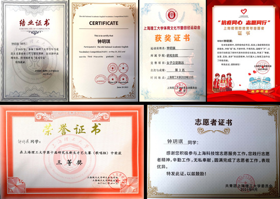 One core journal paper, six academic papers, four innovative invention patents (photocatalysis), national scholarship, Shanghai excellent graduates, school excellent cadres, graduate party standard bearer, the third place in the long jump of the school athletic meet, the third prize in the singing group of the school talent competition, excellent youth volunteer certificate ...... Perhaps some stu...